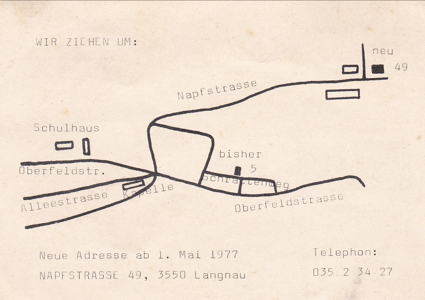 Umzug aus Platzgründen ans heutige Domizil der Napfstrasse 49, in 3550 Langnau